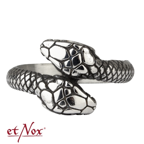 Inel masiv din oțel inoxidabil, decorat cu două capete de șarpe, simbolizând înțelepciunea și transformarea. Face parte din colecția etNox urban style, fiind o alegere ideală pentru stiluri gotice, alternative sau inspirate din mitologie.