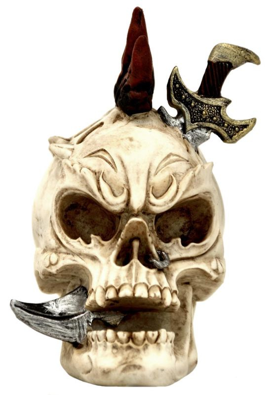 Îmbogățește-ți spațiul cu această figurină craniu cu sabie, o reprezentare meticuloasă a artei gotice. Fiecare detaliu este sculptat cu grijă și pictat manual, oferind un aspect autentic și captivant.