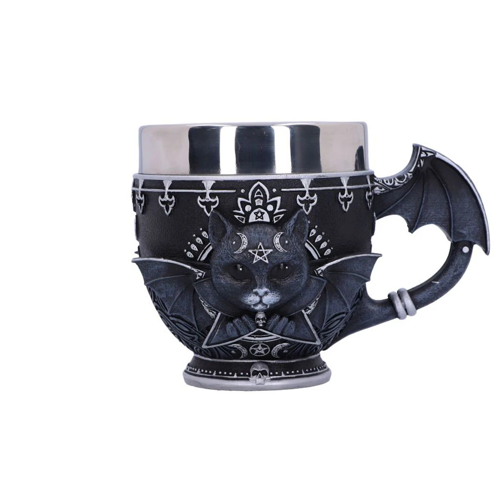 Pocal Pinkys Up – Malpuss 11cm: ceasca gotica din rasina pictata manual, cu maner in forma de aripi de liliac. Parte din colectia Cult Cuties de la Nemesis Now.
