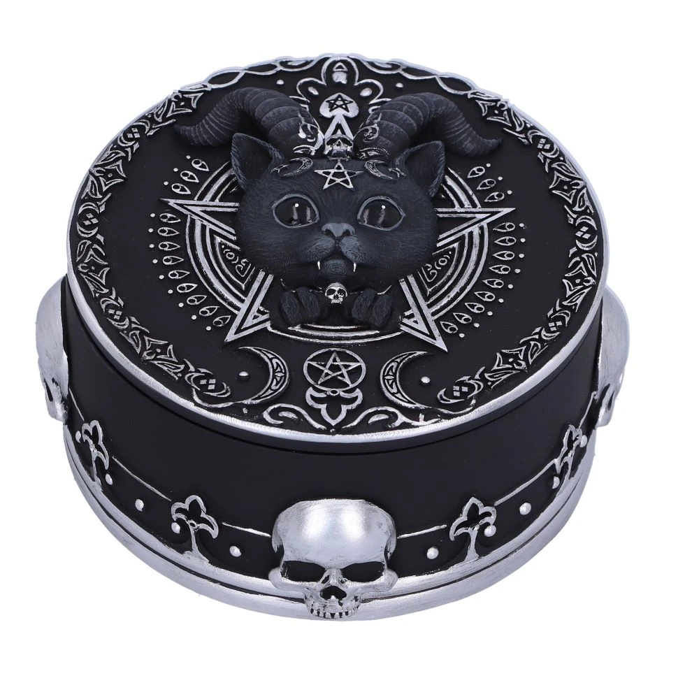 Din mintea fermecatoare a echipei noastre interne de proiectare vine aceasta Pawzuph Trinket Box. Pawzuph este uniunea dintre caracteristicile bune si rele de pe capacul cutiei de bibelouri, privindu-te cu adoratie. In timp ce te uiti in ochii lor negri, observi intunericul care se afla in cutia de bibelouri decorata cu simboluri gotice arginti. Este turnată în cea mai fină rășină înainte de a fi pictată manual cu experiență.