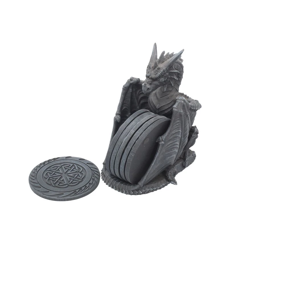 Adaugă un element de mister și eleganță mesei tale cu setul "Dragons Lair" de la Nemesis Now. Acest suport impresionant prezintă un dragon negru, ale cărui aripi formează un loc perfect pentru cele șase suporturi de pahare incluse. Fiecare detaliu este meticulos realizat din rășină de înaltă calitate și pictat manual, asigurând o piesă de decor deosebită. Cu o înălțime de 16,5 cm și o greutate de aproximativ 1 kg, acest set este atât funcțional, cât și estetic, fiind un cadou ideal pentru pasionații de dragoni și decoruri gotice.