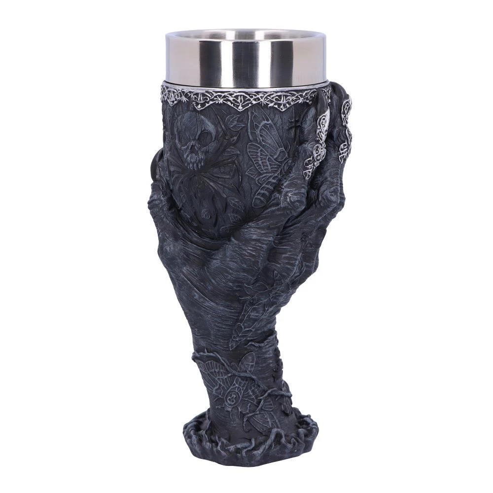 Este un pocal denumit "Baphomet's Grasp", creat de Nemesis Now. Acest pocal gotic prezinta mana lui Baphomet, simbolizand echilibrul contrariilor, care se intinde din neant, cu pielea incretita si ghearele apucand cupa. Cupa este decorata cu motive infricosatoare, inclusiv inscriptiile latine "Solve" si "Coagula" pe incheietura mainii, simbolizand separarea si unirea. Pocalul este realizat din rasina de inalta calitate, pictata manual, si include un insert din otel inoxidabil pentru o curatare usoara. Dimensiunile aproximative sunt: inaltime de 19 cm, latime de 8 cm, diametrul insertului metalic de 6,5 cm. Acest pocal este ideal pentru pasionatii de obiecte gotice si ocultism.